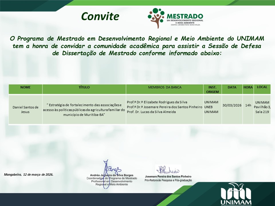 CONVITE: Sessão de Defesa de Dissertação de Mestrado
